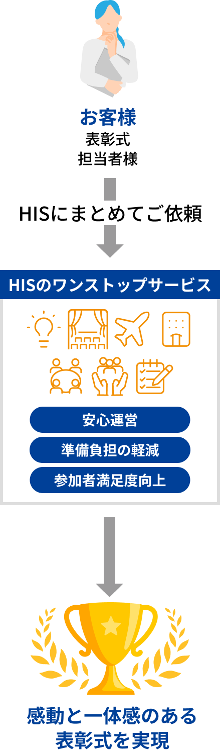 旅行会社として培ったおもてなしの心で、表彰式を安心して楽しめるよう万全に対応します。