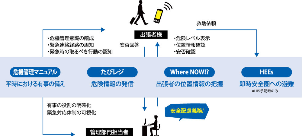 HISは、他社手配分も含めて全ての出張者に迅速な危機管理サービスを提供し、