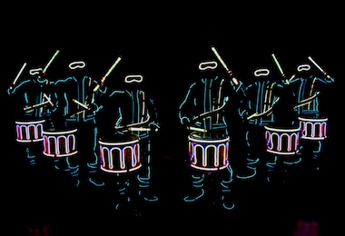 普段は脇役のマーチングドラムをあえて主役として用い、LED演出を融合させた唯一無二のパフォーマンスです。固定概念にとらわれないその舞台は、多くの観客を魅了します。