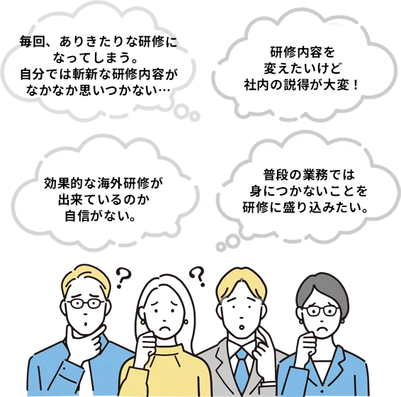 海外研修を実施する目的や、企業様が抱えられている課題をうかがった上で、研修内容を一緒に検討させて頂きます。 - 研修を兼ねた社員旅行の相談はできますか?