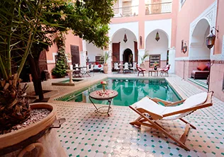 宿泊はホテルではなく、リアドと呼ばれる邸宅を改装した宿泊施設に。館内装飾からモロッコの豊かな文化を学ぶことができます。