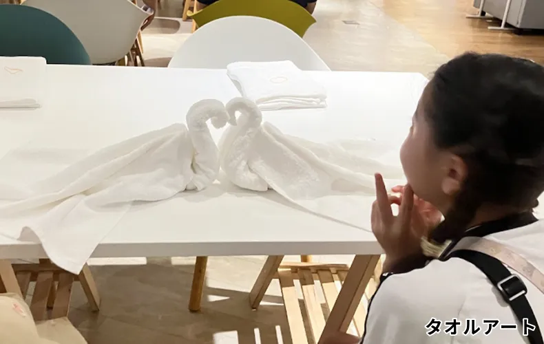 ・タオルアート(ホテル業のお仕事見学の一環としてタオルアート体験)