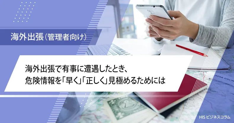 海外出張時の危険情報をいち早く察知することは、事態に巻き込まれることを防ぐため、また、万が一巻き込まれた場合でも被害を最小限に抑えるために、極めて重要です。