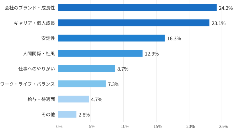 ここから見えることは、「成長」が意味するのは、単なる「能力を身に着ける」ことだけでなく、昇格、昇級といったキャリアアップのチャンスも含まれるということです。また、「ブランド企業に入れた」という事実は、彼らにとってキャリアのゴールではなく、あくまで「市場価値の証明」のスタートラインにすぎないということです。彼らが本当に求めているのは、企業の看板ではなく、その環境でどれだけ普遍的なスキルを磨けるかという「中身」なのです。