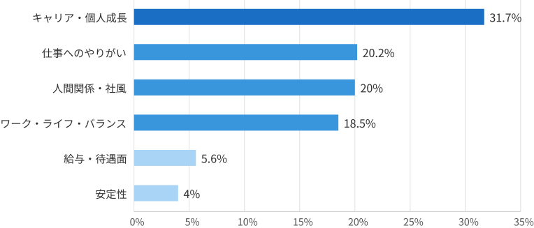 しかし、注目すべきはその「退職理由」です。同調査において、退職理由の第1位は「キャリア・個人の成長」に関連するもので、全体の3割を超えています。