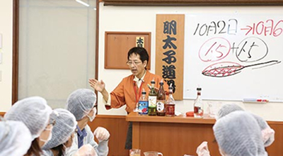 博多の食や名産品を見て、食べて、触れる体験ができる観光施設。辛子明太子の漬け込み体験教室を開催しています。世界でひとつしかない辛子明太子を作ってみませんか。
