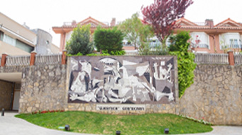 ゲルニカの街にある、パブロ・ピカソがドイツ空軍のコンドル軍団によって爆撃を受けたゲルニカの街を主題として1937年に描いた絵画の実物大タペストリー。 -