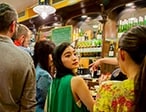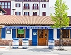 サンセバスチャンの人気店。地下にもレストランが広がっているが、お客さんは入り口付近のカウンターや店の外に並ぶテーブルで肩を並べ、ピンチョス、チャコリや赤ワインなどを楽しむ。 -