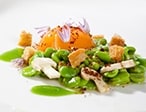 バスク地方にあるミシュラン三ツ星のレストランのひとつで、サンセバスチャンから少し離れた丘の上の高台に立っています。こだわりの食材が季節の野菜とともに、上品な仕上がりとなっています。 -