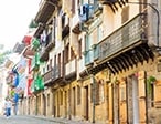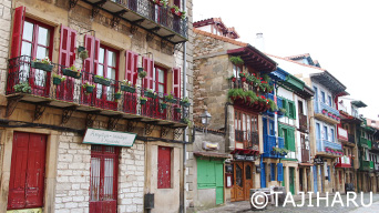 旧市街の赤や緑などバスクフラッグの色をなぞるような建物のデザインの統一感が美しい街並み。カラフルな街並みは、どこで撮っても活き活きとしたフォトスポットになります。 -