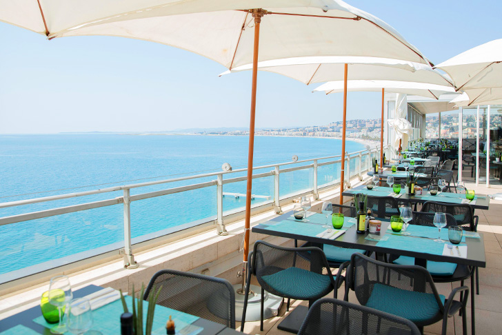 プロムナード・デ・ザングレ沿いに位置し、旧市街からも歩いてすぐのモダンラグジュアリーホテル。プールも併設されたルーフトップバーからは、昼も夜もニース海岸の全景が見られます。