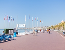 イギリス貴族が散歩していたことから「イギリス人の散歩道」を意味する名前のついたニースの海岸通り。散歩だけではなく、ジョギングやサイクリングなどを楽しむ人々も多いです。