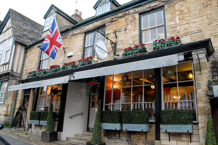ハフキンス・ショップ19世紀創業の、コッツウォルズ地方に5軒の支店を持つベーカリー&ティールーム。バーフォード店のショップは、ユニオンジャックのデザインがキュートな人気のエコバッグやオリジナルの紅茶、ジャムなどお土産の宝庫です。