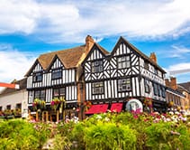 ストラトフォード・アポン・エイヴォンコッツウォルズ地方の入り口にあり、偉大なる劇作家・シェイクスピアの故郷として人気の高い、風光明媚な街。漆喰の壁と太い梁が印象的なシェイクスピアの生家や、藁葺き屋根の家並み、シェイクスピア劇場など見所が満載です。