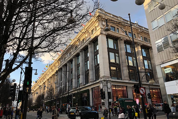 リバティ・プリントはロンドンの老舗百貨店「リバティ・ロンドン」が製作・販売する花柄を基調とする生地。服や雑貨などが人気です。百貨店でお馴染みの1階は化粧品売り場というスタイルはセルフリッジが発祥といわれ、人気デパートです。