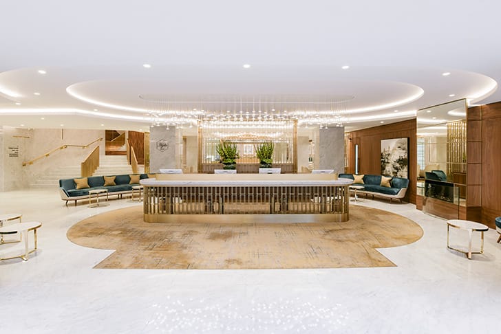ロイヤルランカスターロンドン地下鉄ランカスターゲート駅 (Central Line) に隣接。目の前にハイドパークが広がり「2018年に訪れるべき世界の新装ホテル14選」にリストアップされた大型高層ホテル。落ち着きのある内装です。 -