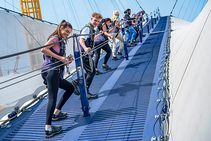 O2 アリーナロンドン中心街から東に位置するロンドン五輪の会場の1つにもなったアリーナ。このアリーナの屋根には実は登ることができる体験プログラムがあります! アリーナの頂点、高さ52メートルからみるロンドンの街並みやテムズ川の景色は圧巻です。 -