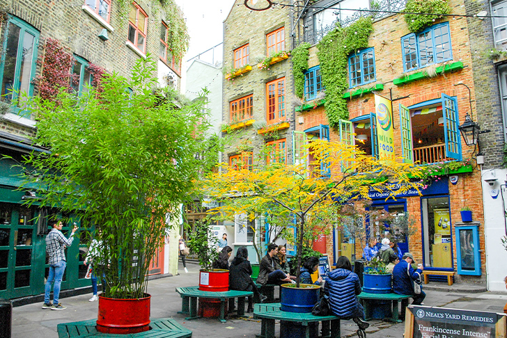 ニールズ・ヤード/コヴェント・ガーデンロンドン屈指のショッピング街、コヴェント・ガーデンにはカジュアルブランドの路面店やレストランがいっぱい。オーガニックコスメ店やカフェ、ベーカリーのあるカラフルなニールズ・ヤードは、足を運びたい癒しスポットです。 -