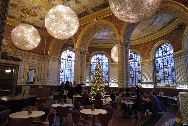 装飾美術とデザインの博物館で知られる「ヴィクトリア&アルバート博物館」内のカフェ。世界初の博物館内レストランで、その美しい内装で有名です。豪華な装飾が施されたカフェで贅沢なひとときを。 -