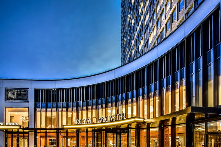 ロイヤルランカスターロンドン地下鉄ランカスターゲート駅 (Central Line) に隣接。目の前にハイドパークが広がり「2018年に訪れるべき世界の新装ホテル14選」にリストアップされた大型高層ホテル。落ち着きのある内装です。 -