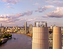 バタシー発電所火力発電所を再開発し、2023年10月にオープンした複合商業施設。施設内には、109メートルの高さまでエレベーターで昇り、ロンドンの景色を360度見渡せる新しい展望スポット「LIFT109」があります。 -