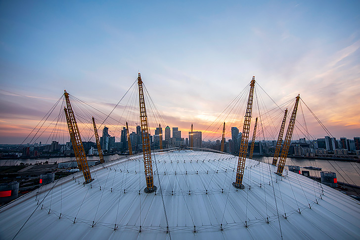 O2 アリーナロンドン中心街から東に位置するロンドン五輪の会場の1つにもなったアリーナ。このアリーナの屋根には実は登ることができる体験プログラムがあります! アリーナの頂点、高さ52メートルからみるロンドンの街並みやテムズ川の景色は圧巻です。 -