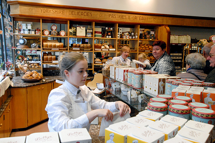 ベティーズ・カフェ・ティールーム「ヨークを訪れたら、ベティーズでのアフタヌーンティーははずせない!」というほど、地元では人気のティールーム。オリジナルのティーキャディー(缶)に入った紅茶やビスケットはデザインも可愛くて、お土産にも喜ばれそう。 -