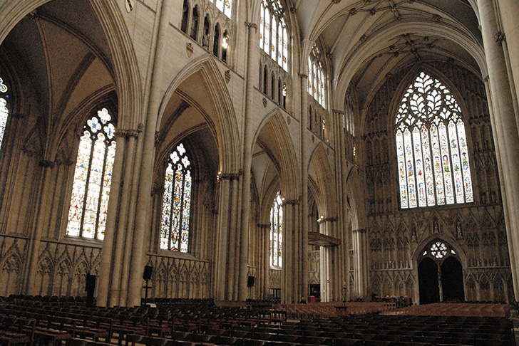 ヨーク大聖堂1220年から250年の歳月をかけて建てられた、イギリス最大のゴシック建築。世界最大のステンドグラス(東大窓)、現存する世界最大の中世のステンドグラス(北翼廊)、ハート型のバラ窓など、荘厳な美しさに心を奪われます。 -