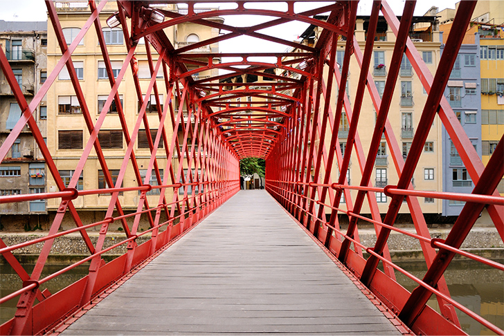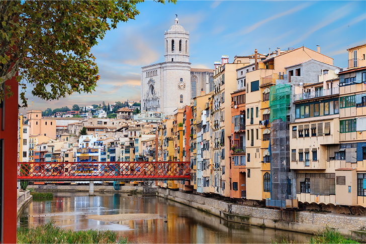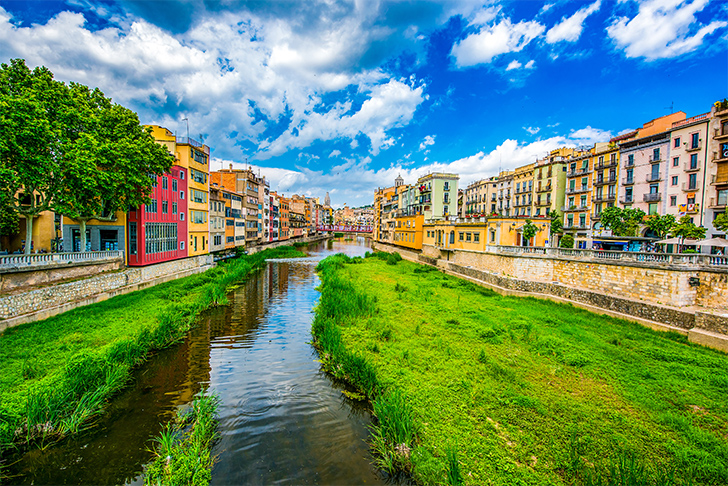 ジローナの街を流れるオニャール川。街には全部で11本の橋がかかっており、旧市街と新市街を結んでいます。オニャール川沿いにカラフルな家々が建ち、水面に映る様子はまるで絵葉書のようです。
