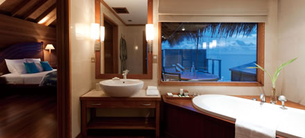 ヒルトングループ最高峰ブランドのコンラッド。完全独立型の水上ヴィラはハイセンスなインテリアでまとめられ、洗練された大人のリゾートを演出。水深約6mの水中に設けられたレストランや水上スパのトリートメントルームでは、他では味わえないヒルトン流モルディブ体験ができそう。
