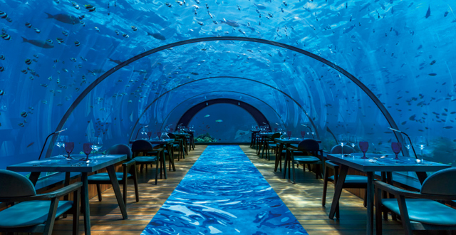 2016年11月オープン!水中レストランでのランチ1回付たくさんの魚に囲まれてお食事を