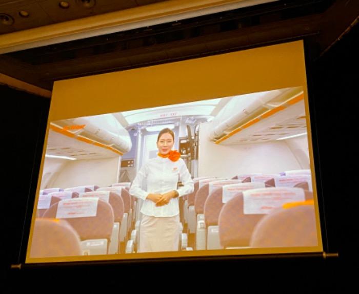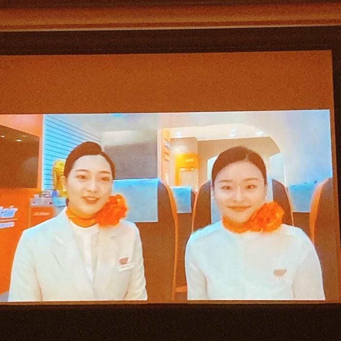 始めにチェジュ航空CAにより案内で済州島経由ソウルへバーチャルトリップ