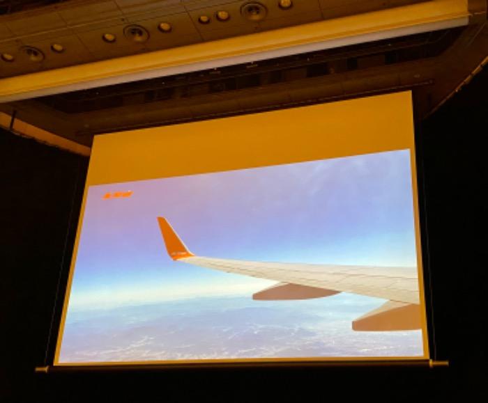 そのあと映し出された画像には飛行機の窓から見える景色