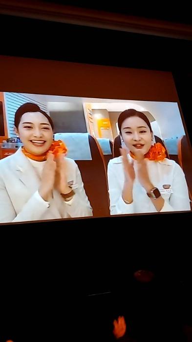 その後は、チェジュ航空が弘大で運営中で、まるで機内にいるような内装で機内食を楽しめるカフェ「ヨヘンマッ」(旅の味)から、キャビンアテンダントさんによるクイズと抽選会。ホテル宿泊券や往復航空券など豪華景品が用意されていました。