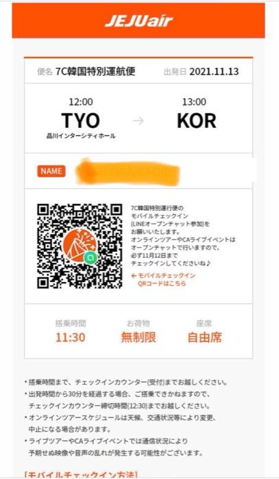 もう予約段階からテンション上がります。HISで旅行の予約をするように、イベントへの予約をするのです!当選者にはチェジュ航空のeチケットも送られて来るのです!