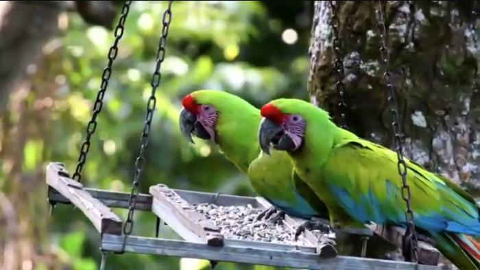 コスタリカのコンゴウインコは4羽も集まってくれて、じっくり観察できました。