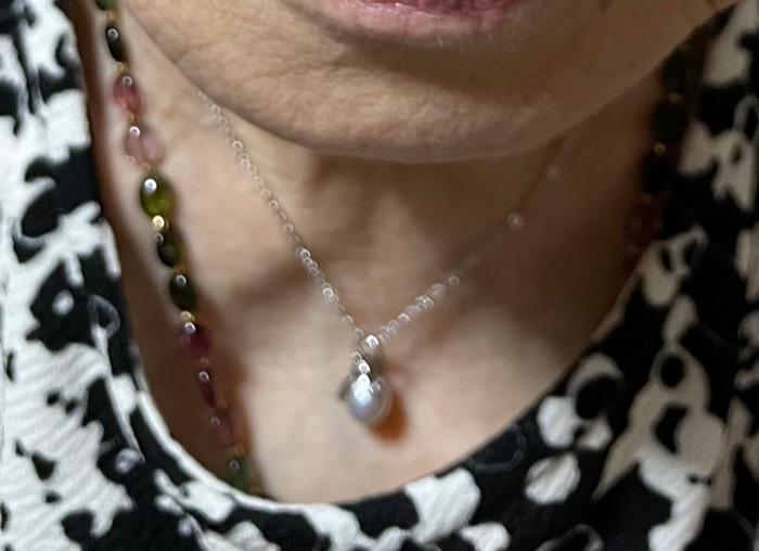 その日のうちに発送してくださったのか、中1日で母の手元に届き、早速身につけて写真を送って来ました。父の命日に生まれた真珠のネックレス。これから毎日身につけるそうです。