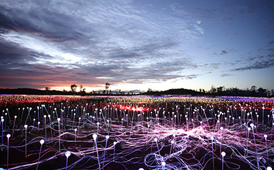 世界の中心と呼ばれる砂漠に現れた光の芸術。ウルル(エアーズロック) フィールドオブライト