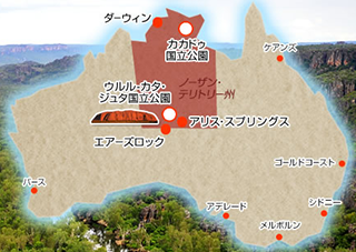 州の北部地域はトップ・エンド、州の南部に当たる大陸の内陸部はレッド・センターと呼ばれ、ダイナミックな自然が特徴的なノーザンテリトリー州。先住民アボリジナルの居住が多く、先住民アボリジナル全人口の約4分の1がノーザン・テリトリーで生活しています。世界遺産に登録されており、自然とアボリジニ文化が共存するカカドゥ国立公園や近代的でスタイリッシュな州都ダーウィンなど幅広い体験ができるエリアです。