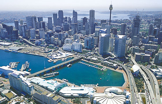 街のシンボル『シドニータワー』や高層ビルが建ち並ぶシドニーの中心。